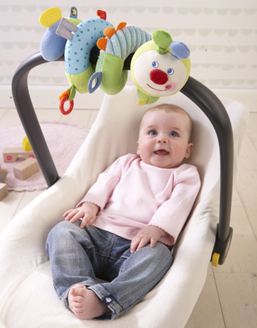 Dieses Mobile ringelt sich perfekt um den Griff von Babyschalen und sorgt so auf Autofahrten für gute Laune. Es eignet sich auch zur Befestigung am Gitterbett. Dann sind kleine Weltentdecker zu Hause lange Zeit beschäftigt und freuen sich immer wieder über die vielen unterschiedlichen Effekte.