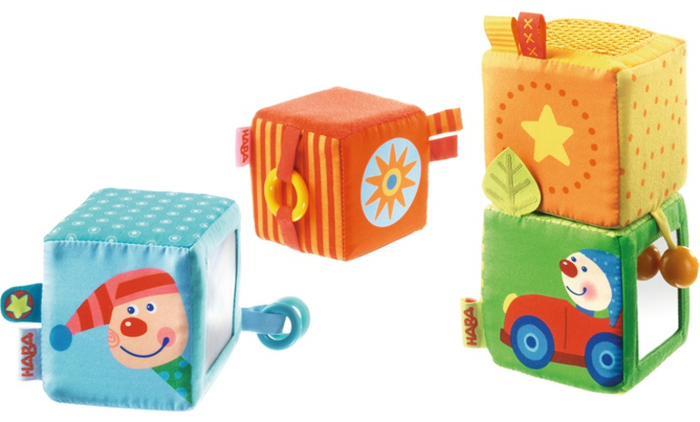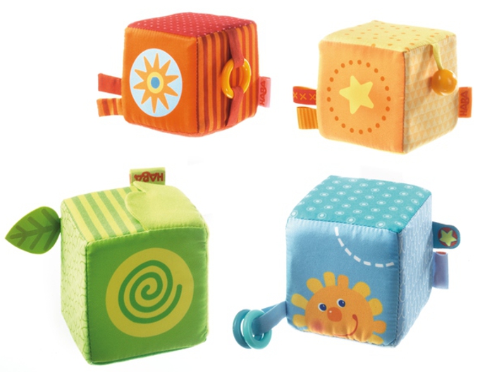 Die Stapelwürfel Kalle Kasper lassen sich aber nicht nur aufeinander stapeln, die vielen unterschiedlichen Materialien, Farben und Formen regen auch zum Spielen und Entdecken an. Die Würfel können auch einzeln zum Spielen genutzt werden.
