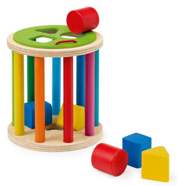 Rollbare Sortierbox mit drei Grundformen zum Erkennen und Einsortieren. Durch das Zuordnen des passenden Steckteils werden Feinmotorik und Verständnis für geometrische Formen gefördert. Zwischen den bunten Stäben ist der Inhalt gut sichtbar, was für zusätzlichen Spaß sorgt. Auch für unterwegs geeignet.