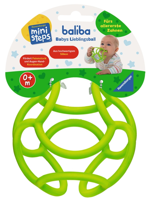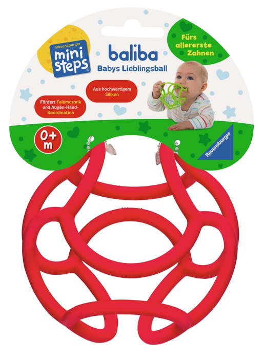Baliba ist der flexible Greifball von Ravensburger und für Babys geeignet, sobald sie nach Dingen greifen. Dank der offenen Struktur können ihn schon die Jüngsten greifen und zum Mund führen.