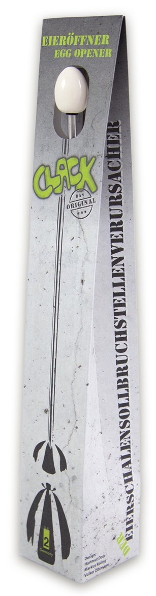 Clack nennt sich Eierschalensollbruchstellenverursacher, einfacher kann man ihn aber auch als Eieröffner bezeichnen.