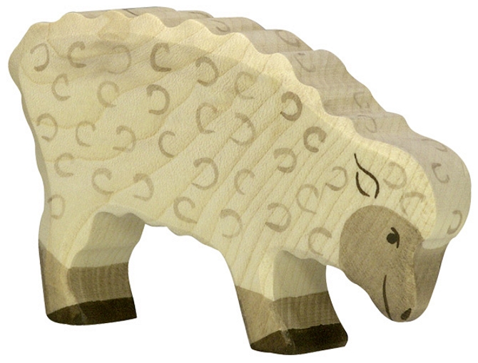 Das fressende Schaf von Holztiger passt zur Weihnachtskrippe genauso gut wie zur Weide und zum Bauernhof.