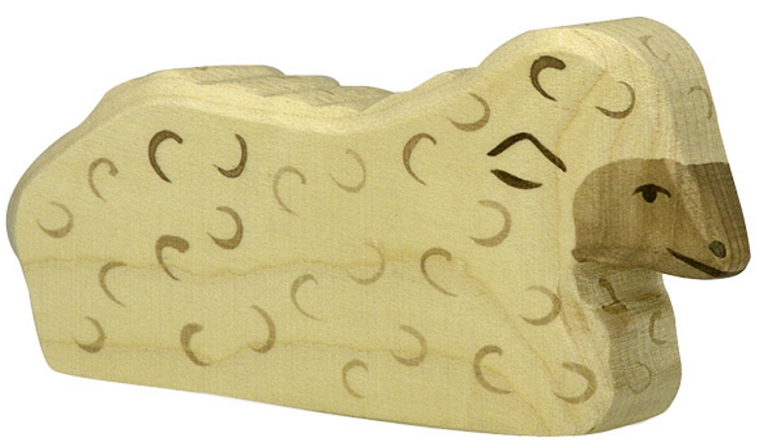 Auch das liegende Schaf von Holztiger passt zur Weihnachtskrippe genauso gut wie zur Weide und zum Bauernhof.