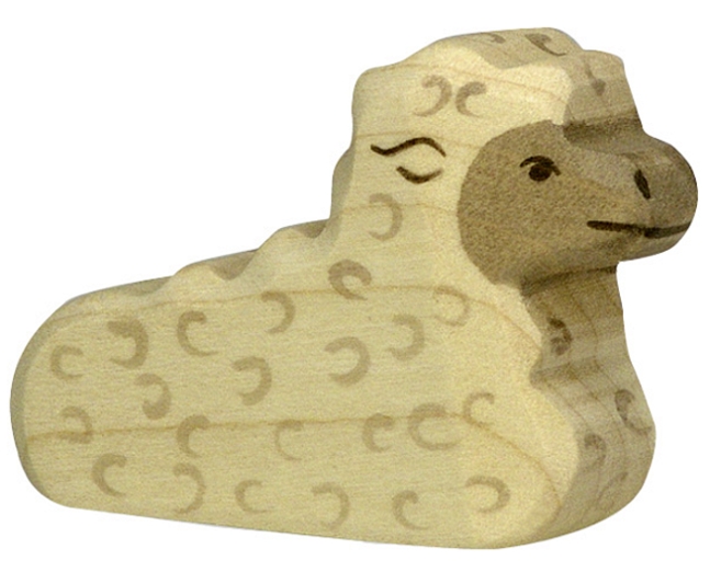 Das liegende Lamm von Holztiger für Weihnachtskrippe, Weide und Bauernhof.
