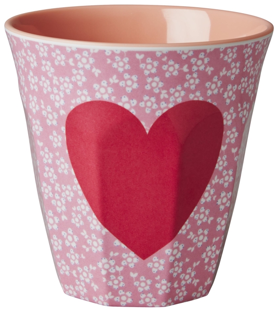 Der Melaminbecher Herz in rosa gehört zu den zweifarbig bedruckten Melaminprodukten von Rice. Diese sind etwas dickwandiger als die einfarbigen.