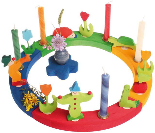 Ein besonders schöner Schmuck für den Geburtstagstisch. Bei dieser Ausführung hat jedes Element eine eigene Farbe. Die Elemente können auch einzeln aufgestellt werden. Dieser Geburtstagsring hat insgesamt 16 Löcher für die individuelle Dekoration mit Kerzen, Zahlen- und Figurensteckern.