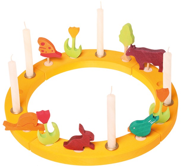 Ein besonders schöner Schmuck für den Geburtstagstisch in gelb lasierter Ausführung. Die Elemente können auch einzeln aufgestellt werden. Dieser Geburtstagsring hat 12 Löcher für die individuelle Dekoration mit Kerzen, Zahlen- und Figurensteckern.