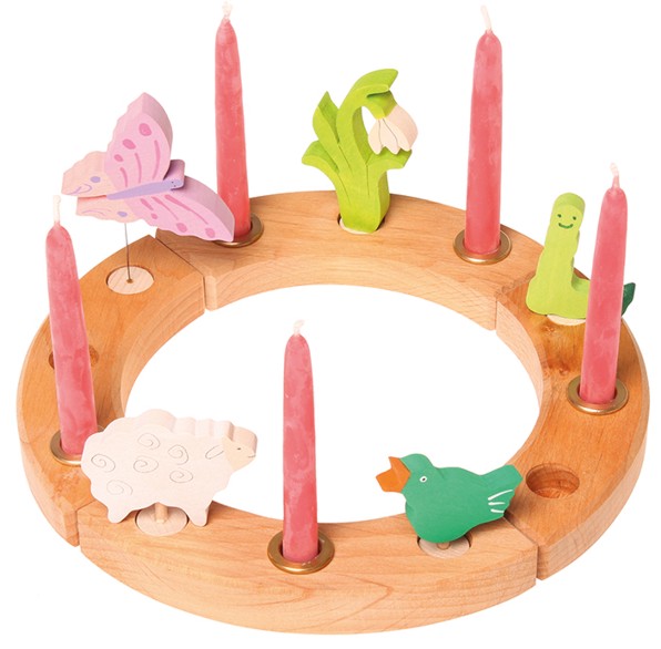 Ein besonders schöner Schmuck für den Geburtstagstisch. Die Elemente können auch einzeln aufgestellt werden. Dieser Geburtstagsring hat 12 Löcher für die individuelle Dekoration mit Kerzen, Zahlen- und Figurensteckern.