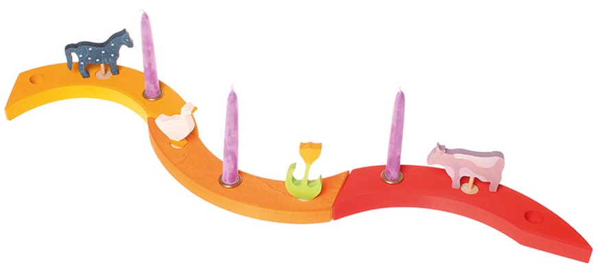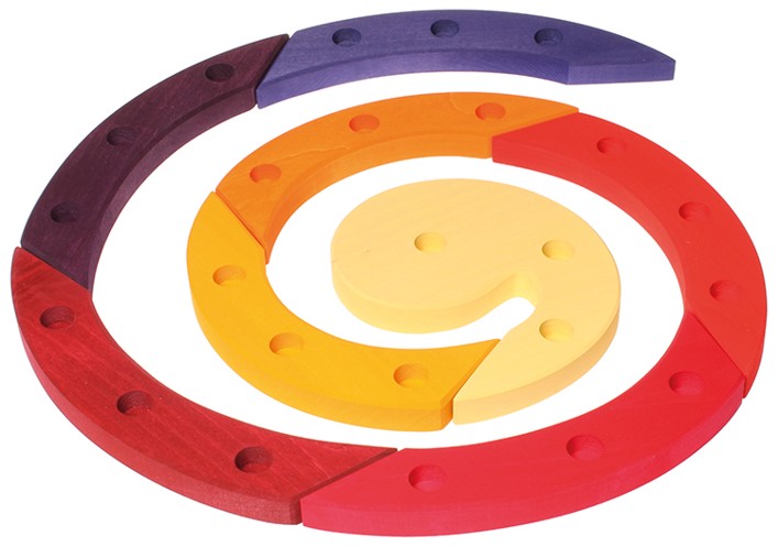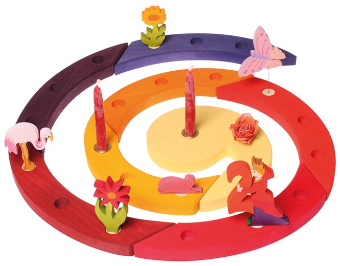 Bei dieser Geburtstagsspirale hat jedes der 8 Elemente eine eigene Farbe. Die Farben reichen von lila über rot bis gelb. Die Elemente dieses ganz besonders schönen Schmucks für den Geburtstagstisch können auch einzeln oder wie eine Wellenlinie in einer Reihe aufgestellt werden. Die insgesamt 24 Löcher können zur Dekoration mit Kerzen, Figurensteckern, kleinen Vasen und Zahlen von Grimm´s bestückt werden. Auch für die Adventszeit ist diese Spirale bestens geeignet. Sie können alle 24 Steckplätze mit Kerzen belegen oder eine Kerze jeden Tag ein Loch weiterwandern lassen. Und die restlichen Steckplätze der Spirale ganz nach ihren Vorstellungen weihnachtlich dekorieren.