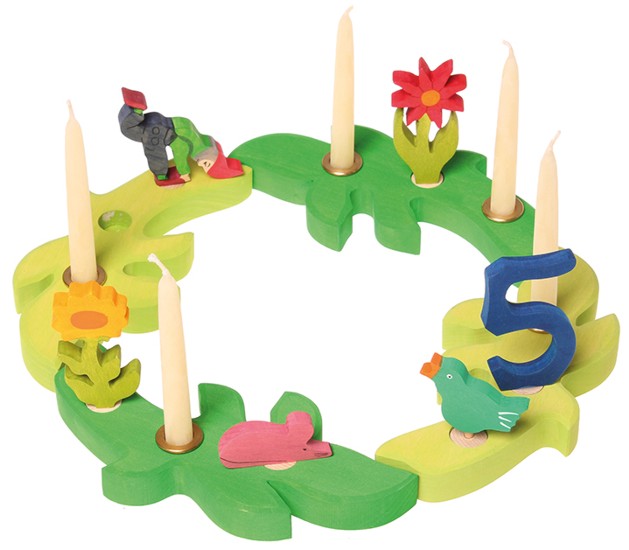 Auch dieser dunkelgrüne Zweig ist ein ganz besonders schöner Schmuck für den Jahreszeitentisch, den Geburtstagstisch, den Kaffeetisch und auch für die Fensterbank. Sie können den Zweig einzeln aufstellen oder auch gleich mehrere. Der hellgrüne Zweig (03276) ist eine ausgezeichnete Ergänzung. Neben Kerzen lassen sich die 3 Löcher auch mit Figurensteckern, kleinen Vasen oder Zahlen von Grimm´s schmücken.