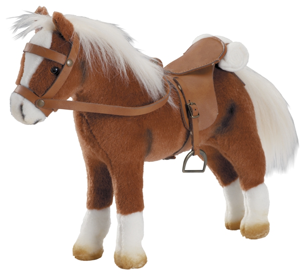 Wenn die Puppe ganz dringend ein Pferd braucht, dann ist dieses Pony sicher eine gute Wahl. Sattel und Zaumzeug sind dabei, da heißt es nur noch aufsitzen und der erste Ausritt kann beginnen.