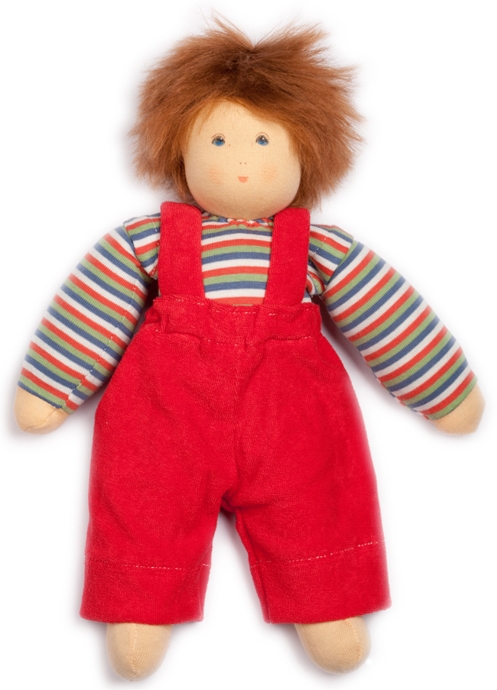 Diese Ausführung hat eine rote Latz- bzw. Spielhose an. Die Latzhose kann aus- und angezogen werden.
