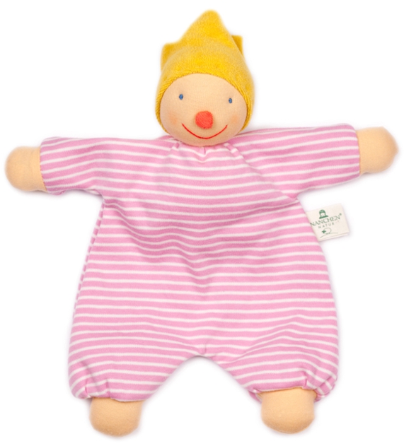 Die Prinzessin Frohsinn von Nanchen ist ein Schmusetuch aus kontrolliert biologischer Baumwolle kbA. Die Füllung besteht aus Schafschurwolle kbT.
