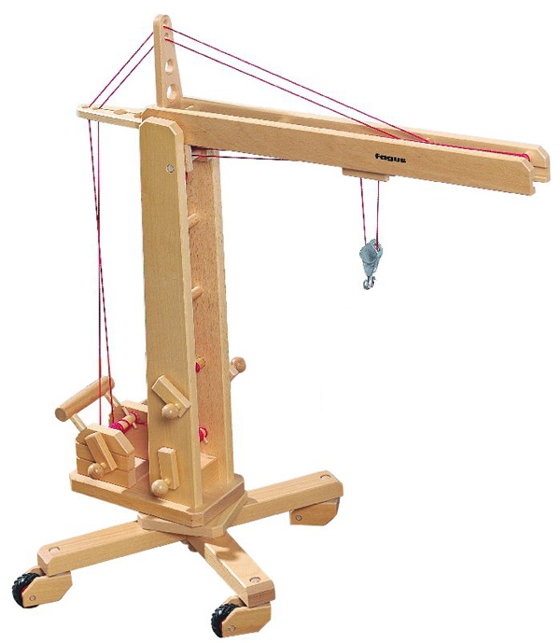 Der Kran ist aus Buchenholz, die Reifen sind PVC-frei und aus echtem Gummi.