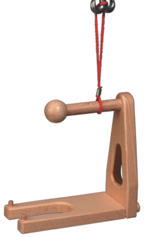 Die Ladegabel ist aus Buche und wird einfach an die Kranschnur angehängt und greift mit dem Arm unter die Palette oder die Box. So können diese dorthin befördert werden, wo sie benötigt werden.