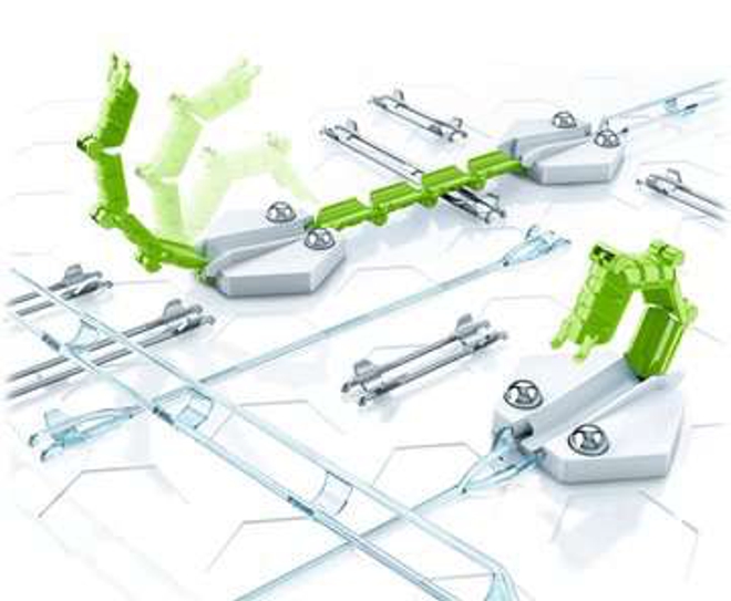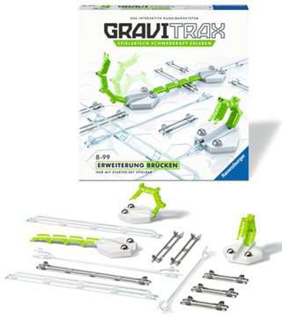Mit dem Gravitrax Erweiterungsset Brücken lassen sich Lücken zwischen Streckenabschnitten schließen. Mit solchen Überbrückungen lassen sich ganz neue Varianten bauen.