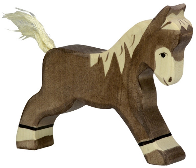 Das dunkelbraune, laufende Fohlen von Holztiger.