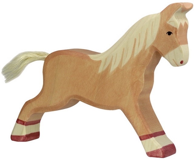 Das hellbraune Pferd von Holztiger in der laufenden Ausführung mit aufgemalter Mähne und richtigem Schwanz.