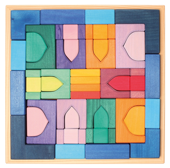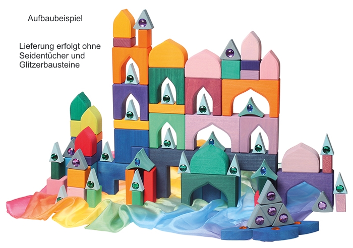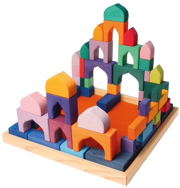 Mit diesem Bauset entstehen Welten wie aus 1001 Nacht. Schon die Kleinsten werden durch die intensive Farb- und Formensprache angesprochen. Je größer die Kinder sind, umso fantasievoller und detaillierter werden die orientalischen Paläste - wunderbar zu kombinieren zum Beispiel mit Glassteinen, Seidentüchern, Sand und Püppchen.