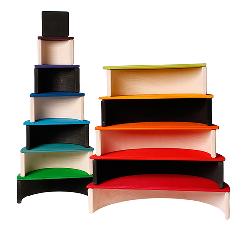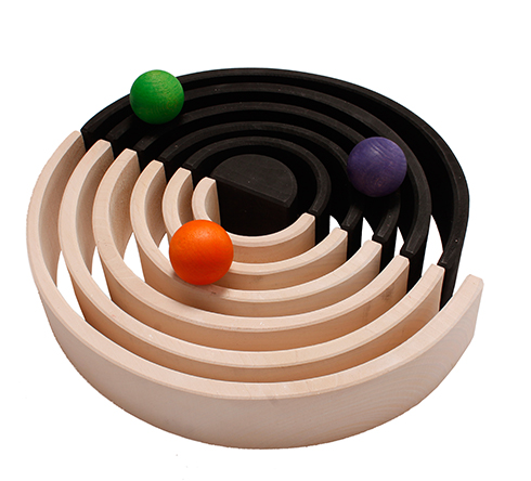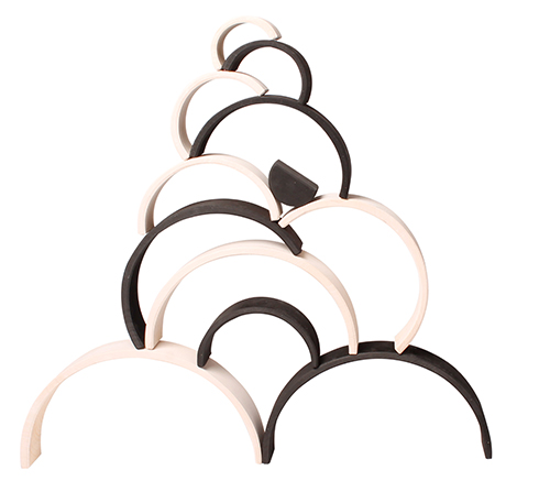 Das große, 12-teilige Bogenspiel aus der neuen monochromen Serie von Grimm´s. Auch die schwarz-weißen Bögen bieten, wie der große Regenbogen, unendlich viele Spielmöglichkeiten. Besonders interessant ist das Zusammenspiel mit zusätzlichen farbigen Elementen. Hier ergeben sich viele eindrucksvolle neue Spielvarianten.