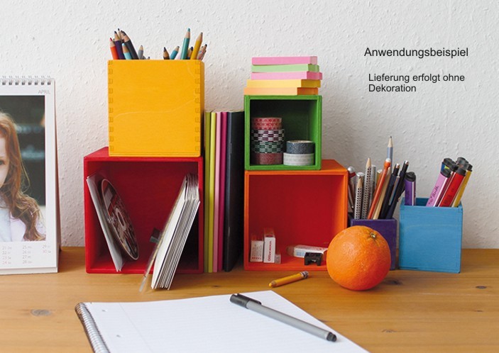 Der große Kistensatz ist vielseitig und praktisch: Für die ganz Kleinen schon zum stapeln, bauen, sortieren und sammeln, für Größere als Häuschen für kleine Püppchen, Garage für Autos und vieles mehr. Auch zum Aufbewahren oder Ordnen auf dem Schreibtisch sind die farbigen Boxen wunderbar geeignet.