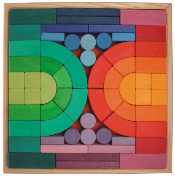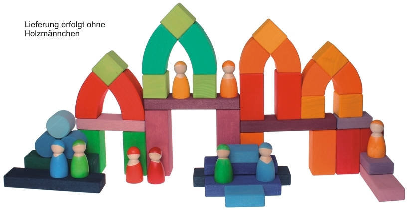 Mit dem Bausteinsatz Romanischer Baukasten kann man romanische Bögen kennenlernen, ausprobieren und begreifen. Beim Bau von Palästen und Burgen wird die Feinmotorik geschult und die Phantasie jedes Kindes beflügelt.