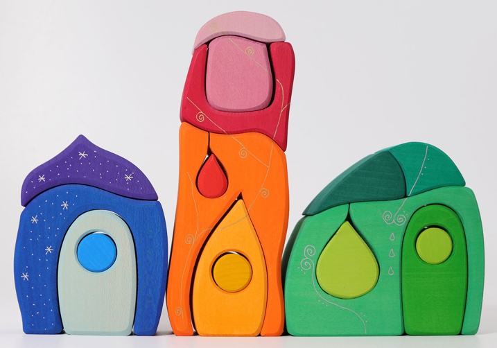 Mit diesen 3 Häusern des Märchendorfes von Grimms können Kinder Märchen nachspielen, eigene Geschichten erfinden und sie passen gut zu allen anderen Bauelementen.