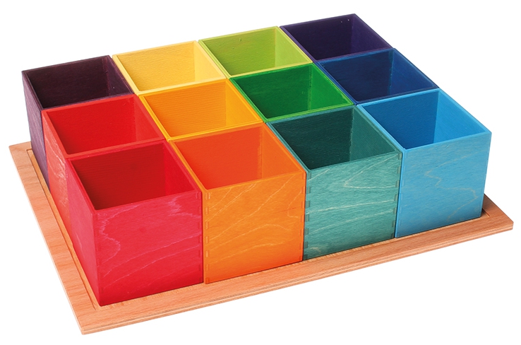 Die große Sortierhilfe von Grimms besteht aus 12 farbigen Holzkistchen und einem Rahmen. Bestens geeignet für alle Holzperlen aus dem Standardprogramm von Grimms. Und natürlich für viele andere Einsatzmöglichkeiten aus den Bereichen Sortieren und Aufbewahren.