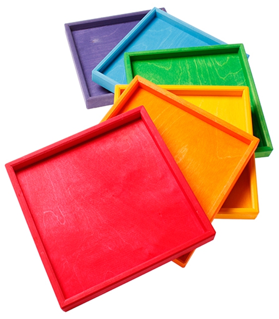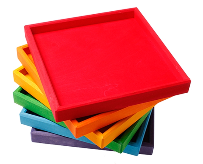 Durch eine vorbereitete Umgebung, wird das Handeln der Kinder übersichtlich geordnet. Ein idealer Rahmen für Sandbilder oder spielen mit Kinetischem Sand. Auch perfekt um in verschiedenen Ebenen zu bauen oder einfach als kontrastreicher Hintergrund für die Monochrom Artikel von Grimm´s.