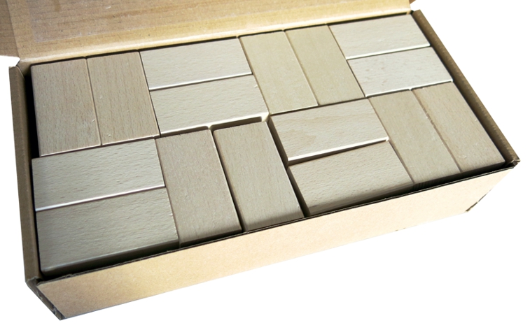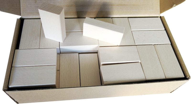 64 ganze Steine mit dem Grundmaß 3,33 cm für Quaderbausteine. Die einzelnen Steine sind 6,66 x 3,33 x 1,66 cm. Die Holzbausteine sind aus Buche und nicht behandelt.